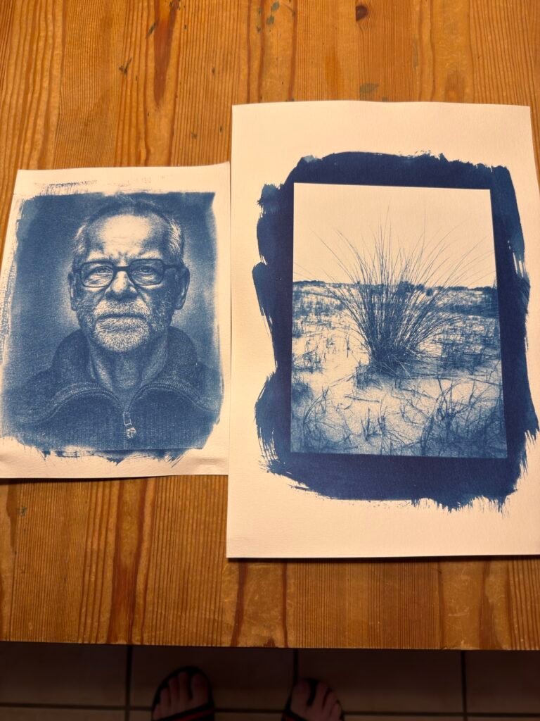 Über die Zeitschrift FineArtPrinter bin ich auf das traditionsreiche Druckverfahren der Cyanotypie (Blaudruck) aufmerksam geworden. Gehört hatte ich davon zwar schon, aber eher am Rande – ebenso wie von anderen alternativen Edeldruck-Verfahren, die jenseits des üblichen Druckens mit Tintenstrahl-Printern liegen. Als FineArtPrinter dann ein kostenloses Webinar anbot, habe ich die Gelegenheit genutzt und es mir während meines Aufenthalts auf Amrum angeschaut.